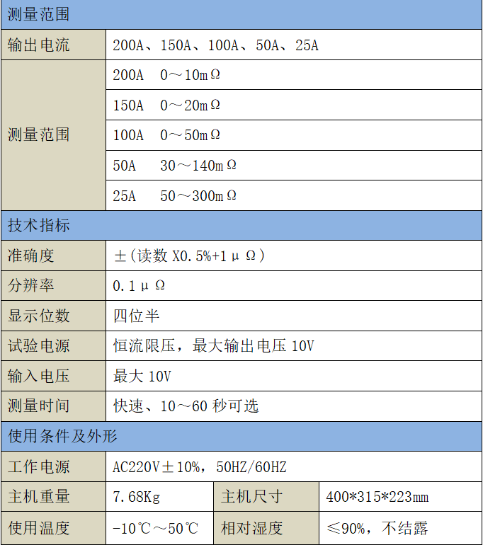 3、測量范圍:0-20mΩ測量范圍。